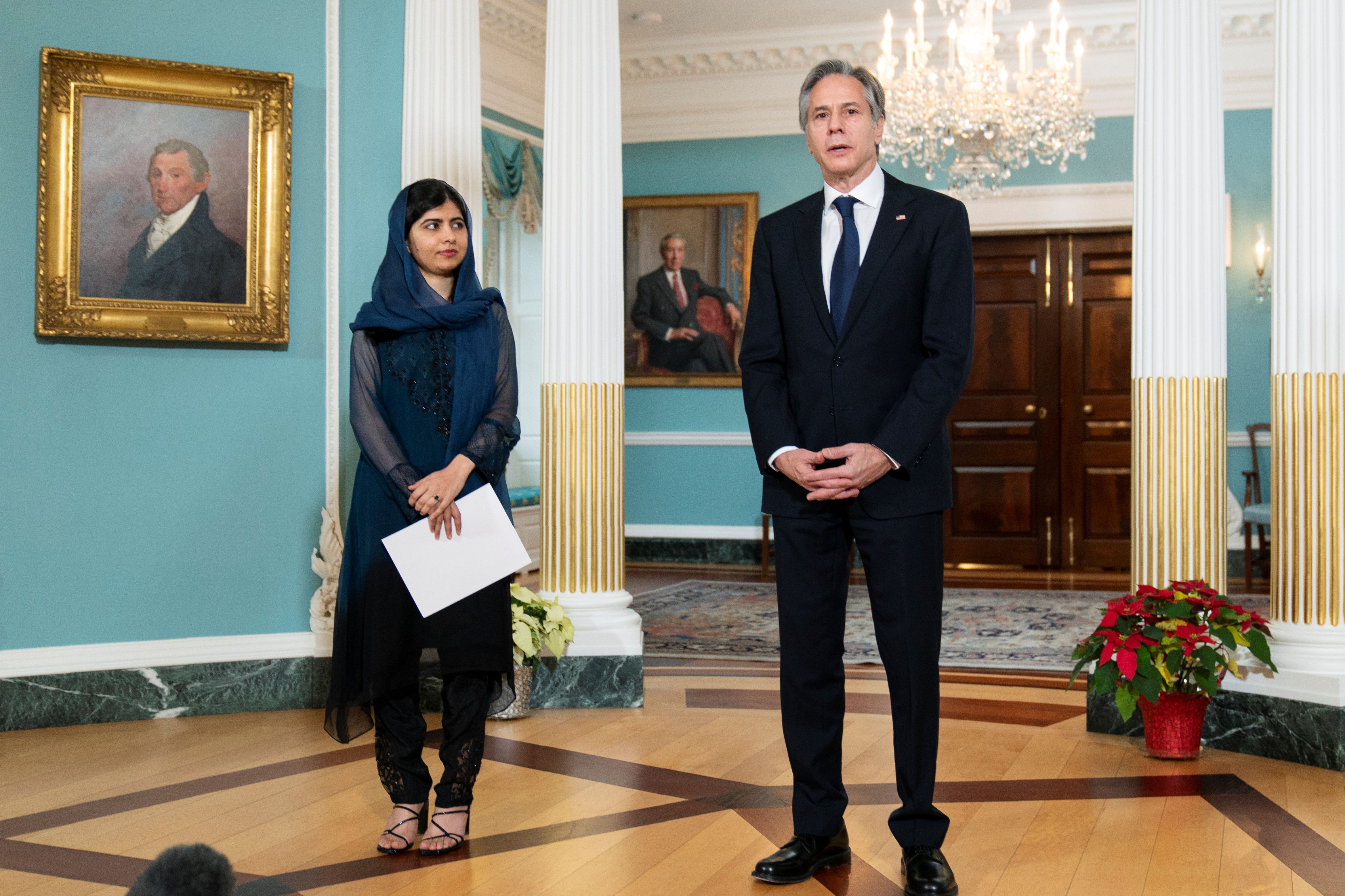 ملاله یوسفزی، دختر پاکستانی برنده جایزه صلح نوبل در دیدار با انتونی بلینکن، وزیر خارجه امریکا خواهان اقدامات قاطع برای دسترسی دختران به آموزش در افغانستان و جهان شد.