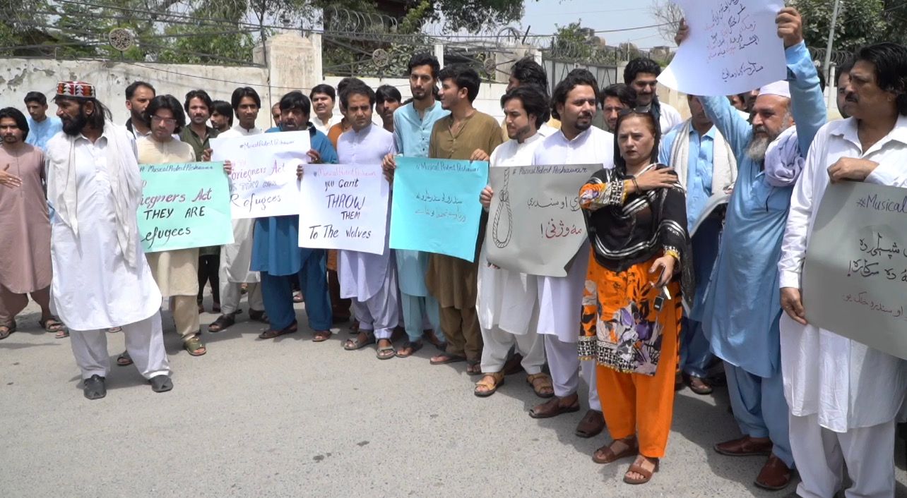 هنرمندان در پیشاور به بازداشت نوازندگان افغان از سوی پولیس پاکستان اعتراض کردند
