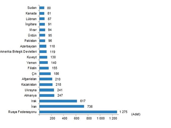 به دنبال آن ایرانیها ۷۳۶، عراقیها ۶۱۷، آلمانیها ۲۴۷، اوکراینیها ۲۴۱، قزاقستانیها ۲۱۸ و افغانستانیها ۲۱۰ خانه در سرتاسر ترکیه خریدهاند.