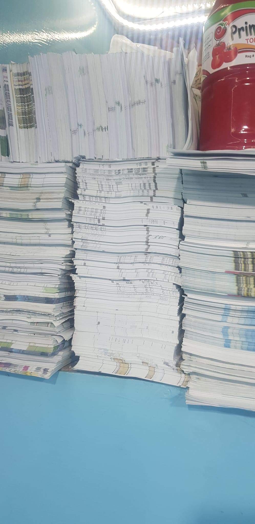 در یکی از این تصاویر دیده میشود که انباری از کتابهای درسی مکاتب افغانستان در گوشهای از برگرخانه انبار شده است.