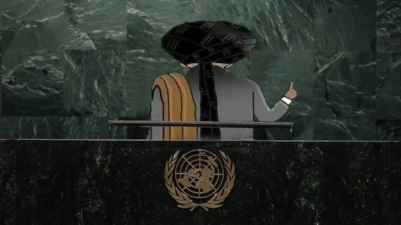 طنز سیاسی؛ ملا هبتالله در مجمع عمومی ملل متحد از پشت سخنرانی کرد