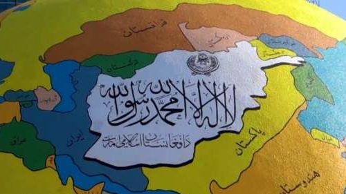 اخیراً شهرداری طالبان در کابل مدلی از کره زمین را نصب کردند که در آن افغانستان با بیرق طالبان به صورت برجسته ترسیم شده است.