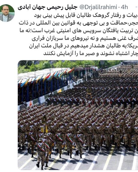 حسن کاظمی قمی، نماینده ویژه رئیسجمهور ایران در افغانستان به طالبان ضربالاجل یک ماهه داد تا حقابه ایران را بدهد. به گزارش خبرگزاری ایسنا، کاظمی قمی گفته اگر ثابت شود در بند کجکی آب است و طالبان حقابه ایران را نمیدهد، حجت تمام است و طالبان باید پاسخگوی کارش باشد.