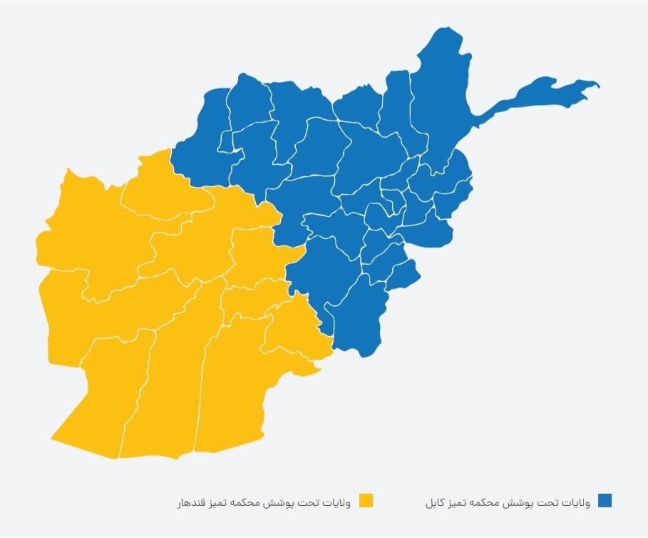 گزارش افزوده که طالبان نام دیوان عالی (استره محکمه) را هم به «اداره عالی محاکم» تغییر داده و حالا دو دیوان عالی به عنوان «عالیترین مراجع قضایی» در اداره طالبان وجود دارند. یافتههای رواداری نشان میدهد که دادگاه تمییز قندهار ۱۰ ولایت را تحت پوشش قرار میدهد و ۲۴ ولایت دیگر مربوط به دادگاه تمییز کابل میشوند.