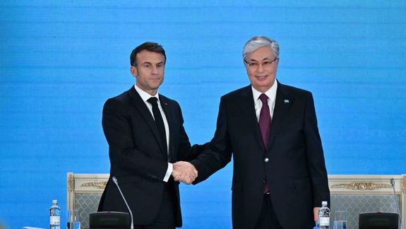 امانوئل مکرون در این سفر با قاسم جومات توکایف، رئیسجمهور قزاقستان دیدار کرده است.