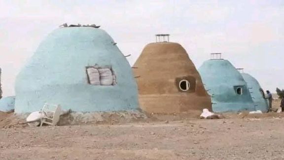 در تصاویری که آقای دریا از این سرپناهها منتشر کرده، کلبههای مخروطی شکل با یک دروازه و یک پنجره کوچک و یک دودکش در سقف گنبدی شکل آنها دیده میشود.