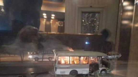 ویدیوهای که از انفجار شام شنبه به افغانستان اینترنشنال رسیده نشان میدهند که یک بس مسافربری نوع کاستر در میان شعلههای آتش میسوزد.