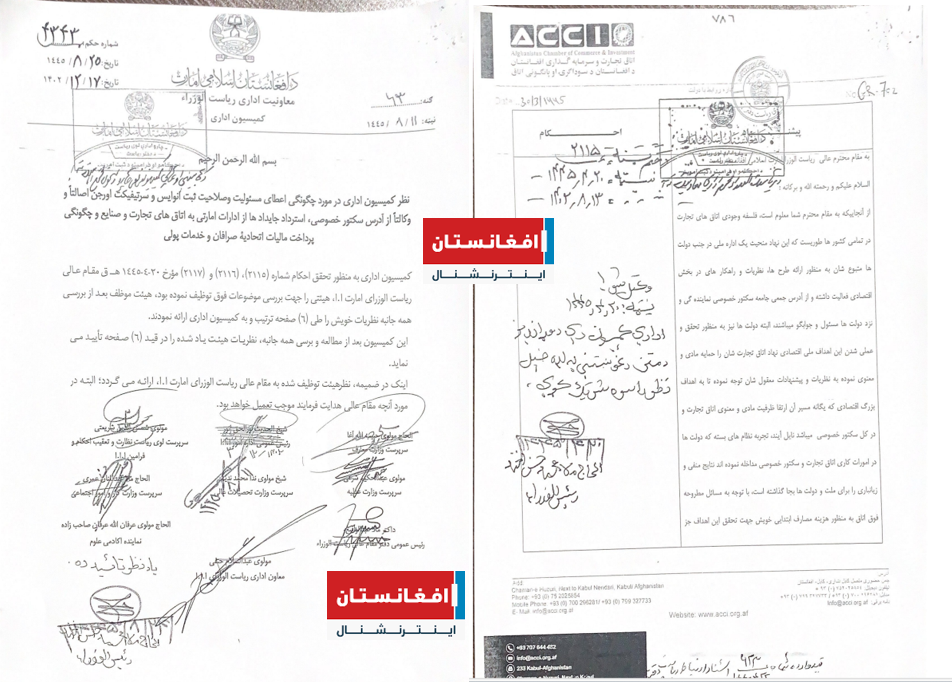 به اساس این اسناد، تلاش وزارت مالیه به جایی نرسیده است و اتاق تجارت و سرمایهگذاری از رئیس الوزرای طالبان خواسته که بگذارد این صلاحیت در کنترول اتاق تجارت و سرمایهگذاری بماند.