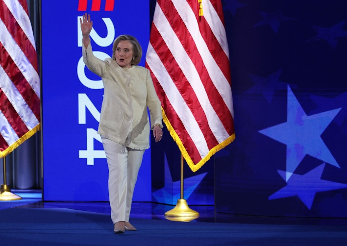 دموکراتها همچنین از هیلاری کلینتون، نامزد شکست خورده از دونالد ترامپ در انتخابات ریاست جمهوری سال ۲۰۱۶ به گرمی استقبال کردند.