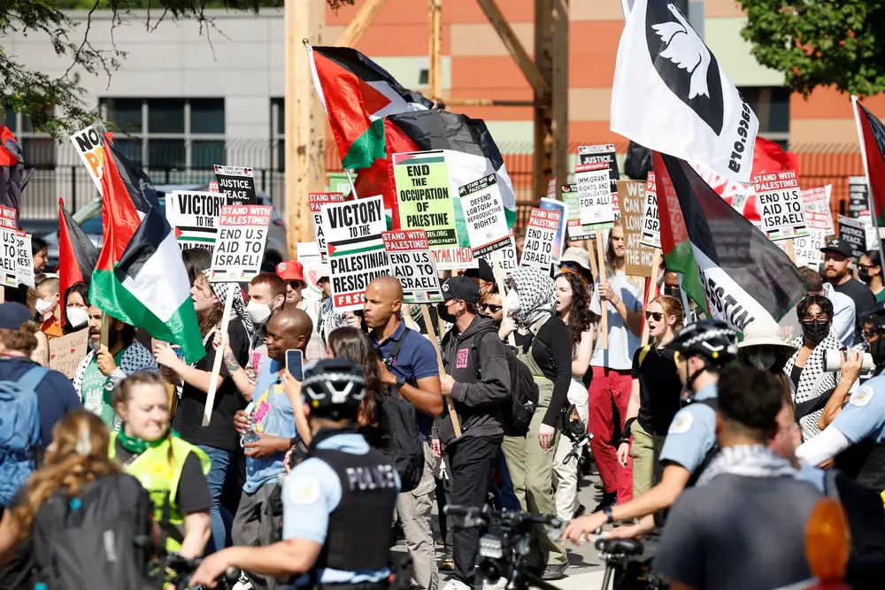 در حالی که دموکراتها برای کنوانسیون ملی خود گرد هم آمده بودند، هزاران نفر در پارکی در همان نزدیکی جمع شدند تا به حمایت نظامی دولت بایدن از حمله اسرائیل به غزه اعتراض کنند.