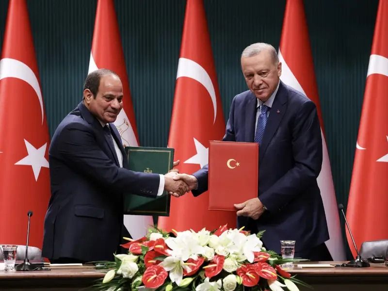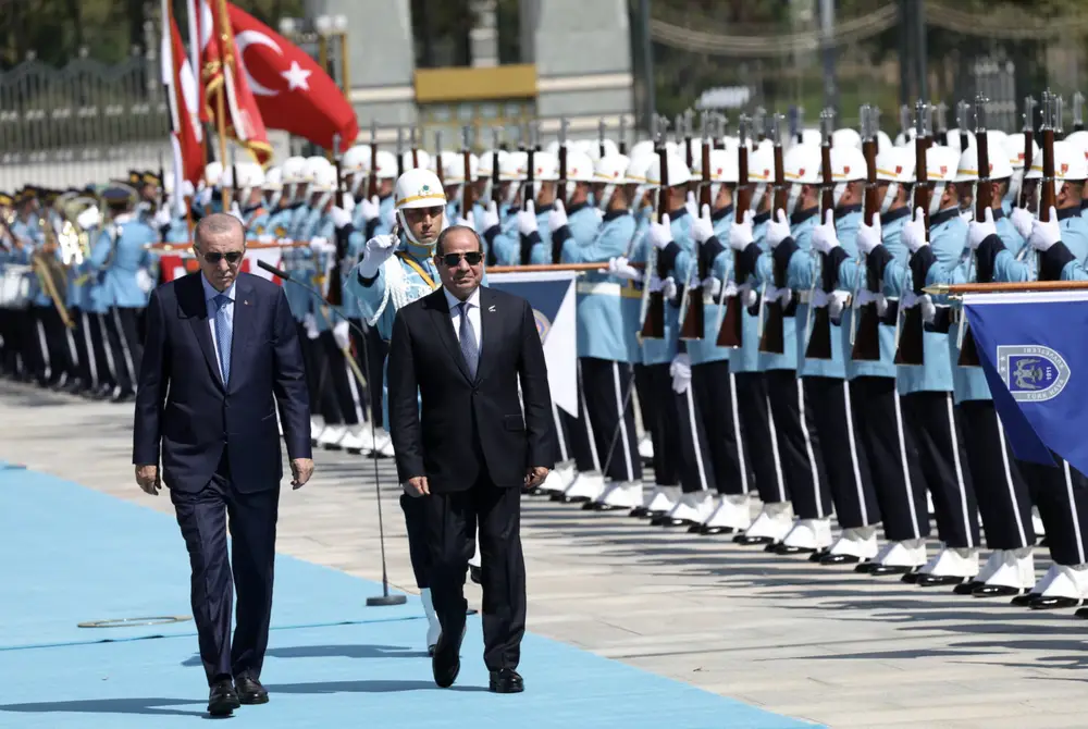 عبدالفتاح السیسی، رئیس‌جمهور مصر و رجب طیب اردوغان، همتای ترکیه‌ای او در انقره دیدار کردند. روابط انقره و قاهره در سال ۲۰۱۳ پس از به قدرت رسیدن السیسی با کودتای نظامی علیه حکومت محمد مرسی، اولین رئیس‌جمهور منتخب دموکراتیک مصر، به شدت تیره شد.