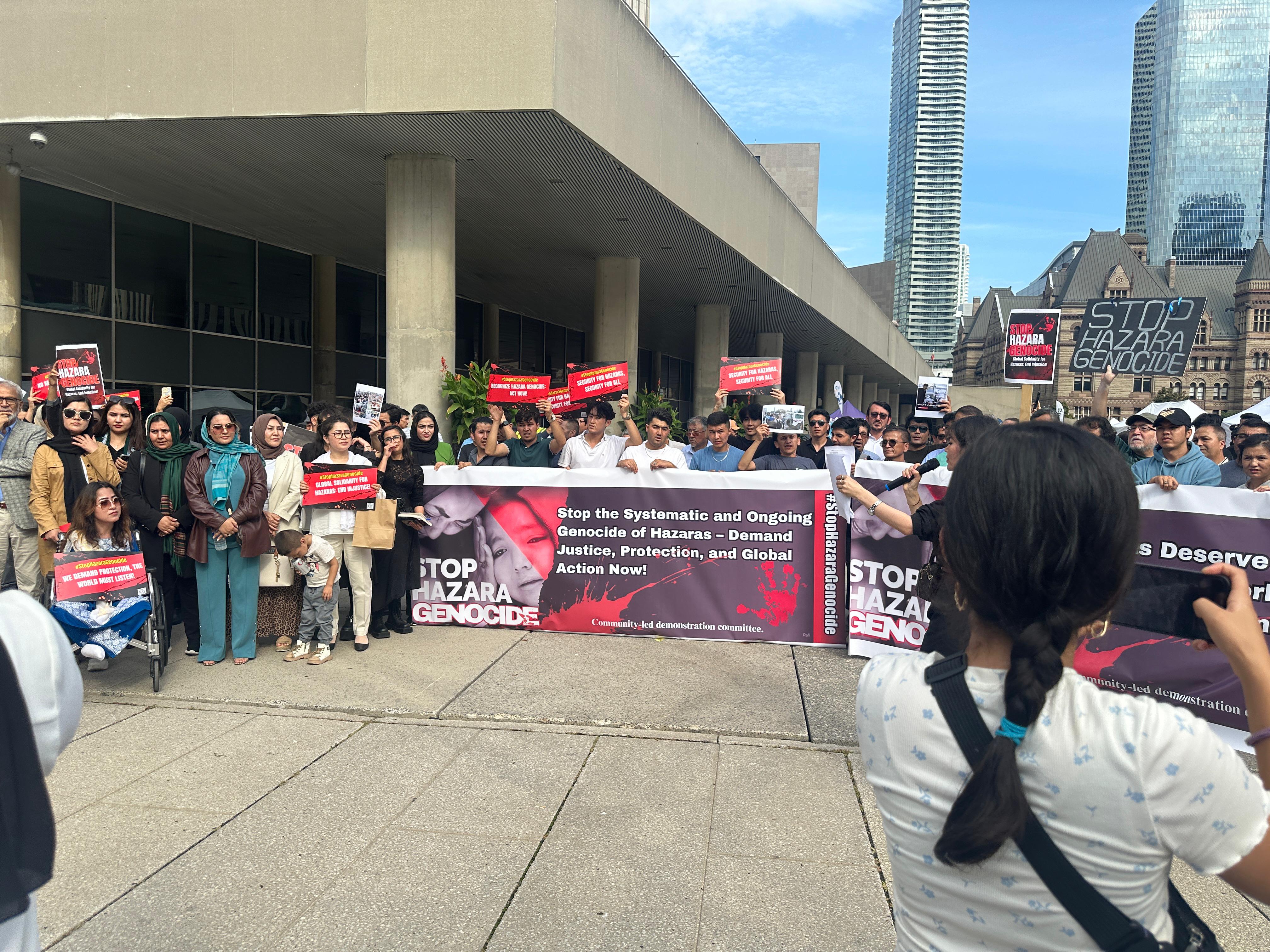 جمعی از افغانها روز یکشنبه در گردهمایی در تورنتوی کانادا، به کشتار هزارهها در افغانستان اعتراض کردند و خواستار به رسمیت شناسی «نسلکشی هزارهها» شدند. در این گردهمایی، رئیس کمیته روابط خارجی پارلمان کانادا، گفت که دولت این کشور از حوادثی که بر هزارهها رخ میدهد مطلع است.