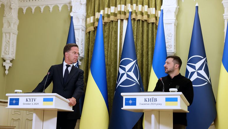 مارک روته در اولین سفر خود به‌عنوان دبیرکل ناتو روز پنجشنبه، ۱۲ میزان، به اوکراین رفت. روته در یک نشست خبری مشترک با ولودیمیر زلنسکی، رئیس‌جمهور اوکراین در کی‌یف بر حق اوکراین برای استفاده از حملات دوربرد به منظور دفاع از خود تأکید کرد.