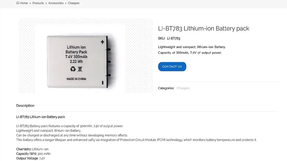 بخشی از سایت apollosystemshk.com که به LI-BT783 اختصاص داده شده، بر عملکرد فوقالعاده باتری این شرکت تاکید دارد. در این توضیحات گفته شده بود که بر خلاف باتریهای یک بار مصرف که پیجرهای نسل قدیمی را تغذیه میکردند، این باتری ۸۵ روز عمر دارد و از طریق کابل USB شارژ میشود.
