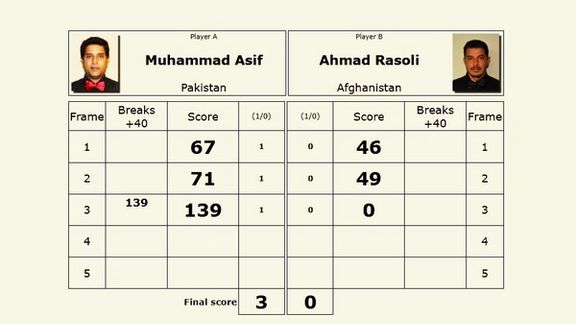 مسابقات جهانی سنوکر؛ صالح محمد محمدی ورزشکار افغان مقابل حریف فلسطینی خود به پیروزی رسید