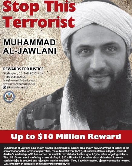 برنامه «پاداش برای عدالت» امریکا برای اطلاعات درباره الجولانی تا سقف ۱۰ میلیون دلار جایزه کرده است.هنوز هم این جایزه به حال خود باقی است.