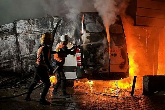 تصویری از یک وسیله نقلیه آسیبدیده با نشان «مطبوعات» توسط این شبکه منتشر شده است.