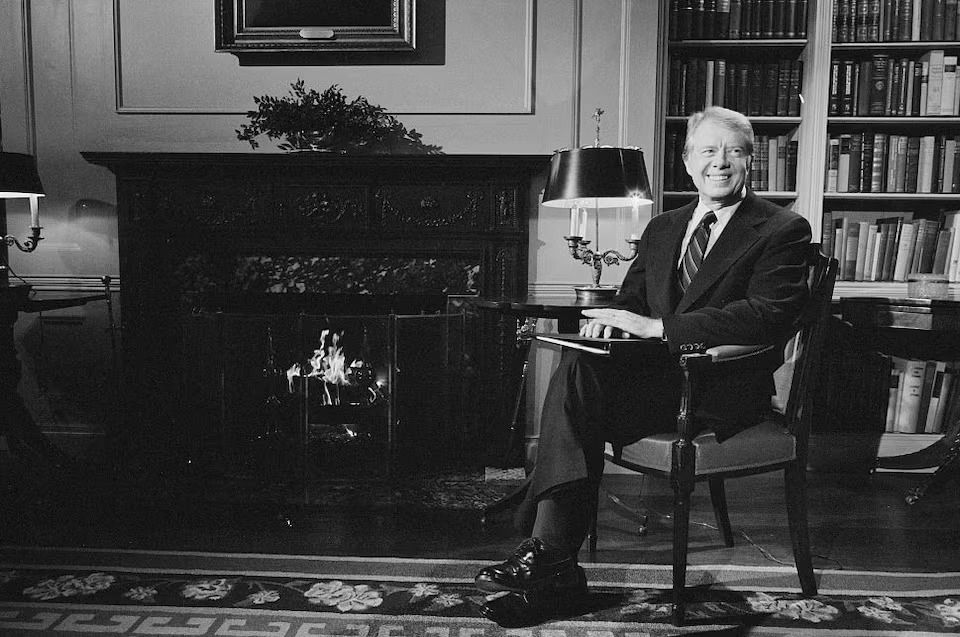 کارتر، رئیس جمهور دموکرات، برای یک دوره از جنوری ۱۹۷۷ تا جنوری ۱۹۸۱ به عنوان رئیس جمهور امریکا خدمت کرد. او در انتخابات سال ۱۹۷۶ توانست جرالد فورد، رئیسجمهور جمهوریخواه را شکست دهد. اما چهار سال بعد در انتخاباتی دشوار با اختلاف زیاد، جای خود را به رونالد ریگان، فرماندار کالیفرنیا واگذار کرد.