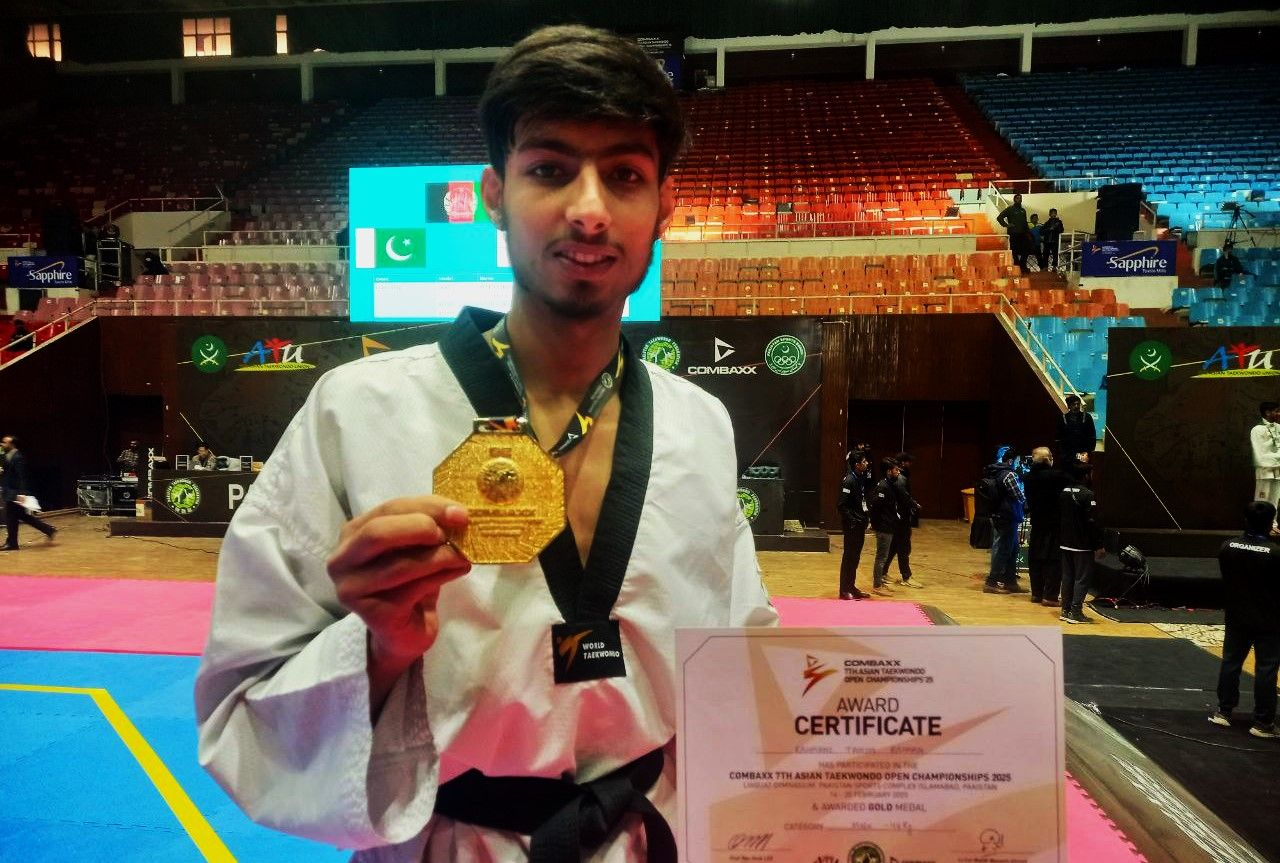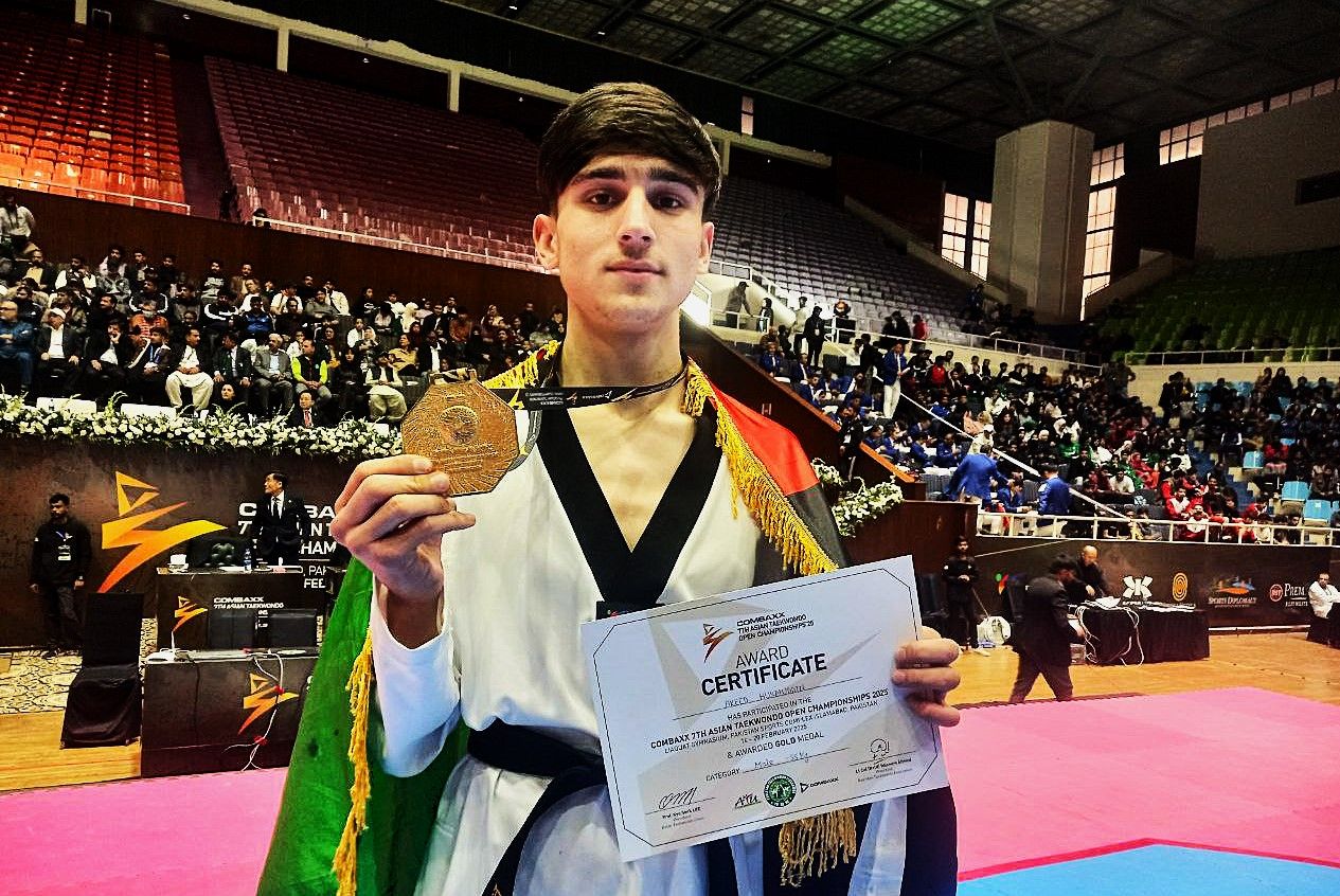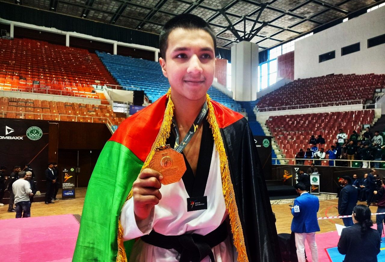 حکمت الله زین، با اقتدار به نیمه‌نهایی رقابت‌های تکواندو آزاد آسیایی پاکستان راه یافت