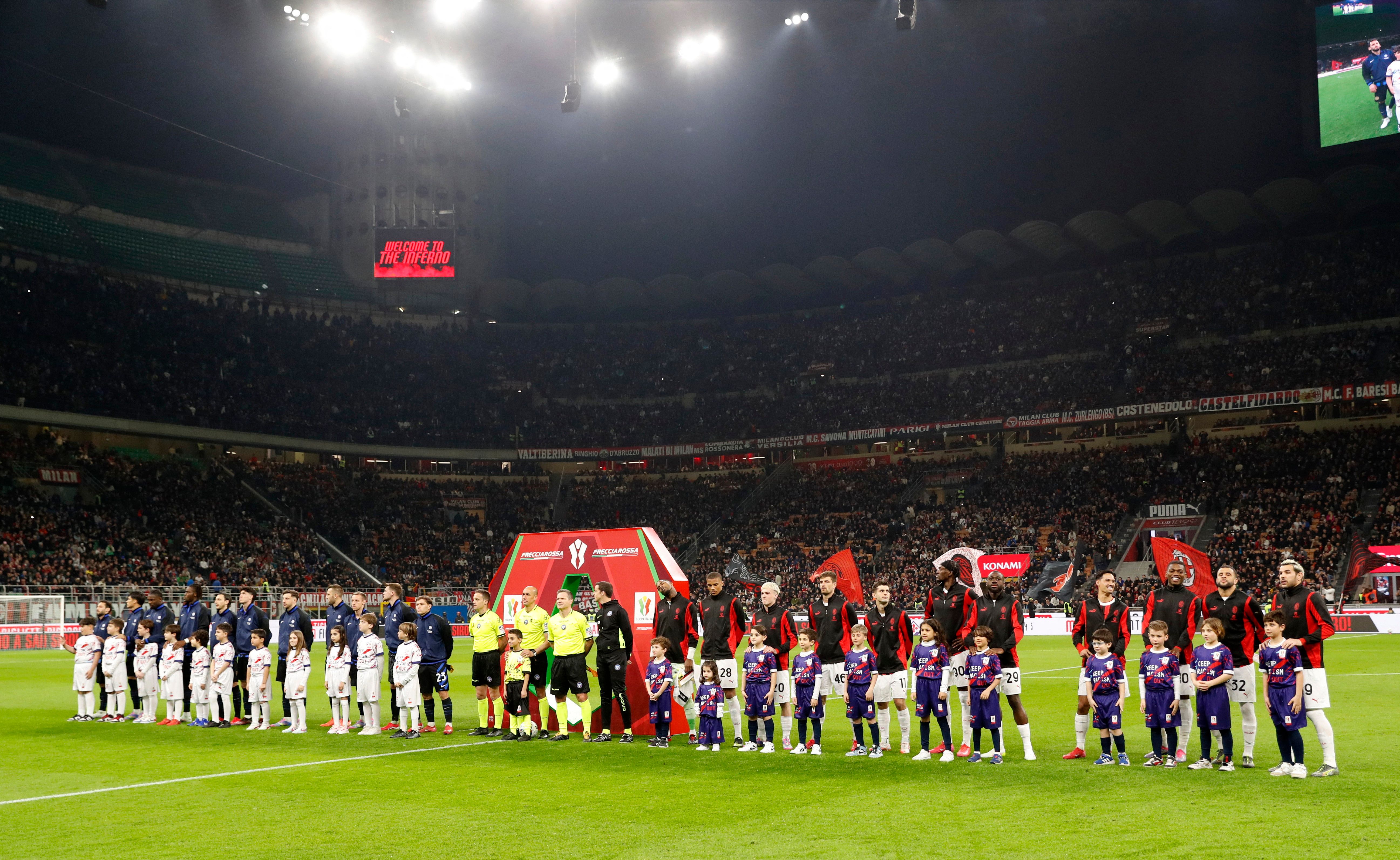 دیدار رفت نیمهنهایی کوپا ایتالیا بین میلان و اینتر با نتیجه یک بر یک مساوی به پایان رسید. این بازی که با میزبانی میلان در ورزشگاه سن سیرو برگزار شد، در نیمه نخست بدون گل به پایان رسید؛ اما در نیمه دوم ابتدا میلان از حریف خود پیش افتاد؛ ولی در نهایت اینتر بازی را مساوی کرد.
