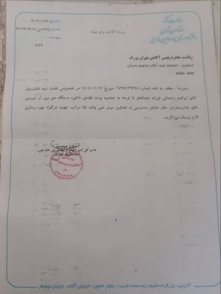 در یک نامه رسمی اداره اتباع و مهاجرین ایران گفته است دسترسی به تصاویر دوربین مداربسته ممکن نیست.
