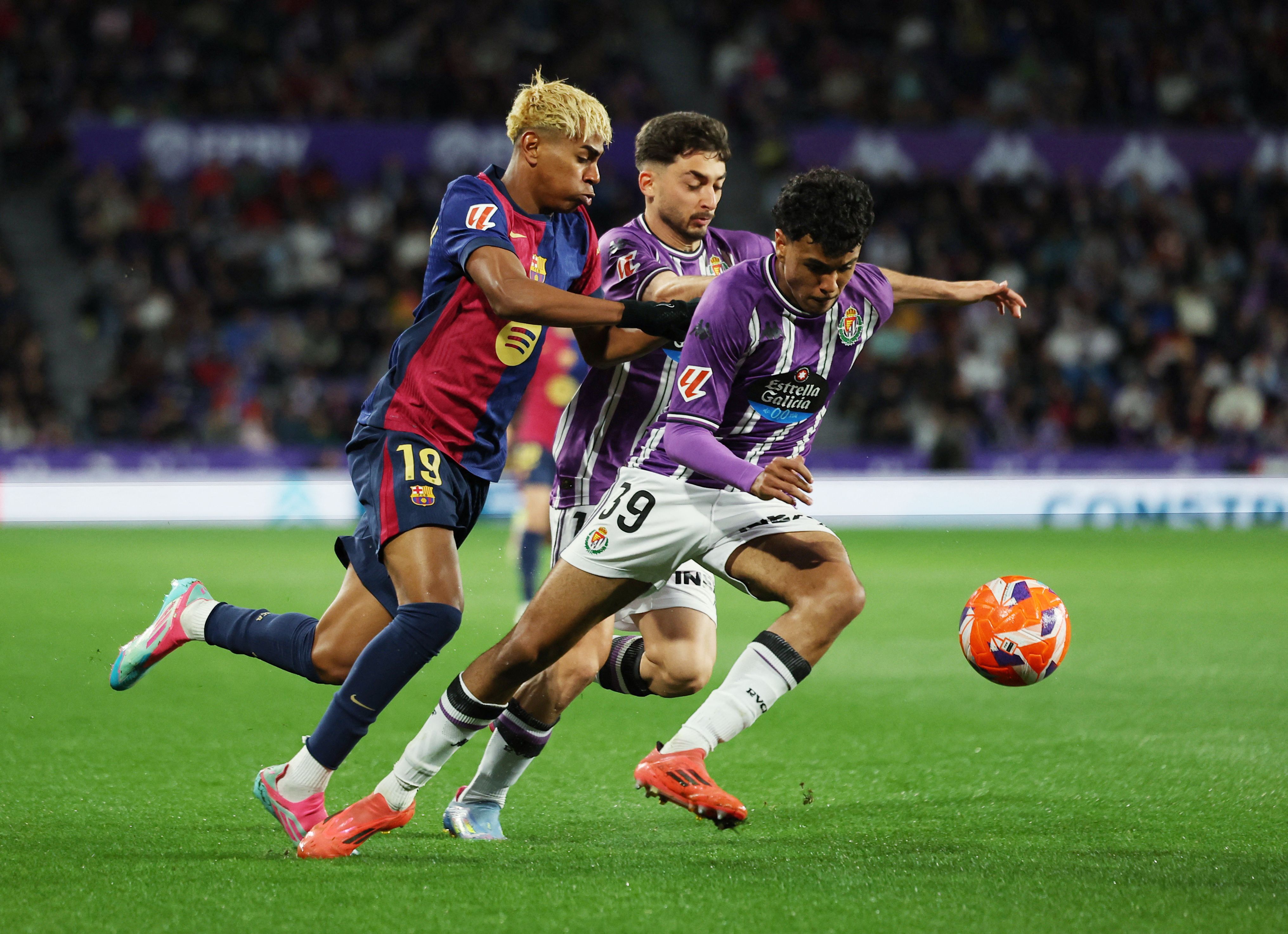 بارسلونا در هفته ٣٤ لالیگا در زمین وایادولید به میدان رفت و ١-٢ پیروز شد. بارسا صدرنشین لالیگا با کسب این پیروزی، فاصله خود را با رئال مادرید به ٧ امتیاز افزایش داد. در این دیدار بارسلونا که به اکثر ستارههایش استراحت داده بود، با گلهای رافینیا (٥٥) و فرمین لوپز (۶۰) برنده شد.