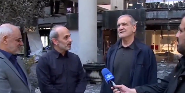 مسعود پزشکیان، رئیسجمهور ایران، از ساختمان تخریب شده صدا و سیما بازدید کرد. آقای پزشکیان در جریان بازدید از مخروبه صدا و سیما، با شوخی به کارکنان این رسانه دولتی گفت: «شما موشک میساختید که اینجا را زدند؟»