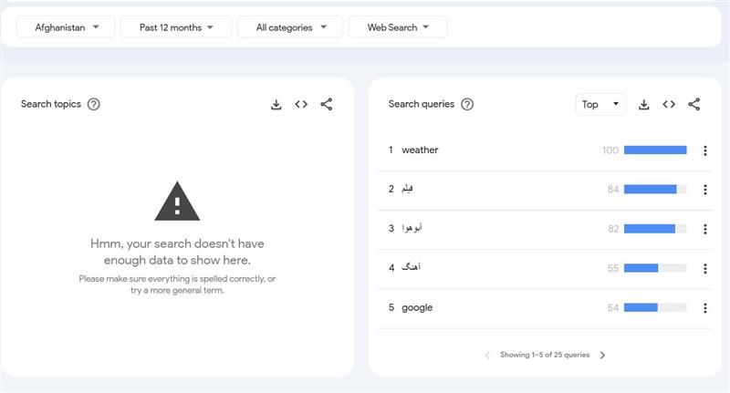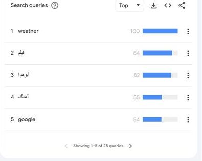 در کنار موسیقی و فیلم، جستجوی وضعیت آب و هوا نیز یکی از پنج کلمات پرکاربرد در جستجوی کاربران افغان در گوگل است.