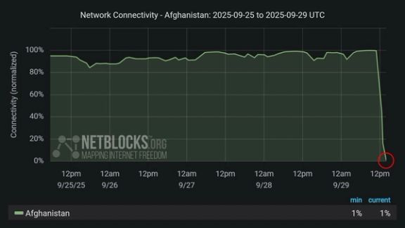 شبکه نظارتی نتبلاکس که وضعیت دسترسی به اینترنت و آزادی دیجیتال را در کشورهای مختلف جهان رصد میکند، اعلام کرد که سطح دسترسی به اینترنت در افغانستان از عصر دوشنبه، ۷ میزان، به پایینترین حد ممکن رسیده و عملاً به صفر سقوط کرده است.