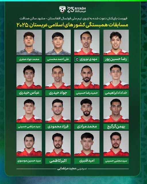 از سوی دیگر، فهرست ۱۶ بازیکن دعوتشده به اردوی تمرینی تیم ملی فوتسال افغانستان برای حضور در این رقابتها نیز امروز منتشر شد. این اردو از سوم عقرب ۱۴۰۴ در سالون صداقت شهر مشهد ایران آغاز میشود.