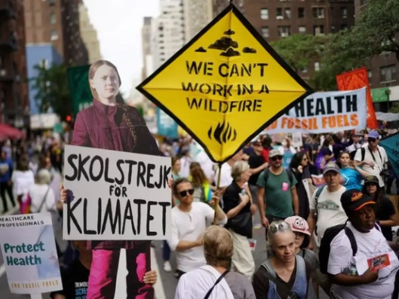 د اقلیم بدلون په تړاو زرګونو اعتراض کونکو د نیویارک په منهټن کې په لاریونونو سره "د چاپیریال اوونۍ" پیل کړه. دوی د امریکا له ولسمشر او نورو هیوادو له مشرانو څخه چې روانه اوونۍ په نیویارک کې غونډه کوي وغوښتل چې د فوسیل سوند توکو کارول و دروي.