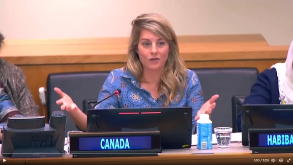 د کاناډا د بهرنیو چارو وزیرې د ملګرو ملتونو د عمومي اسمبلۍ په ناسته کې له دغه سازمانه غوښتي، چې د ښځو او نجونو پر وړاندې دې طالبان د خپلو دغو کړنو له امله ځواب ووایي.