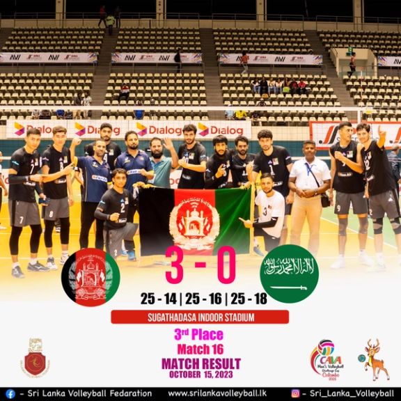 د افغانستان والیبال ملي لوبډلې د اسیا مرکزي زون د والیبال چلینج کپ په وروستۍ ورځ له سعودي عربستانه په ٠-٣ سره لوبه وګټله. دا لوبه د سریلانکا د کولمبو ښار په سوګاتاداسا لوبغالي کې ترسره شوه او افغانستان پکې په ۱۴-۲۵، ۱۶-۲۵ او ۱۸-۲۵ نمرو ګټلو سره دریم مقام خپل کړ.