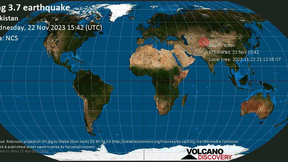 په ورته وخت کې د زلزلو او اتش فشانونو د ارزونې او څارنې ادارې پر خپلې ویب پانې لیکلي، چې نن ماخوستن مهال ۸ بجې او ۴۲ دقیقې د تاجکستان په بدخشان ولایت د ریختر په کچه ۳.۷ درجې زلزله شوې.