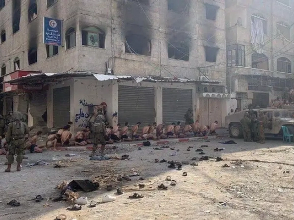 اسراییلي رسنیو تېره اونۍ د پنجشنبې په ورځ د اسراييل له خوا د نيول شويو فلسطينيانو د يوې ډلې انځورونه خپاره کړل، چې د غزې په يوه کوڅه کې يې بربنډ کینولي دي. په انځورونو کې فلسطینیان لیدل کېږي چې له جامو پرته د سړک پر غاړه په ګونډو دي او د اسراییلي پوځیانو له خوا یې څارنه کیږي.