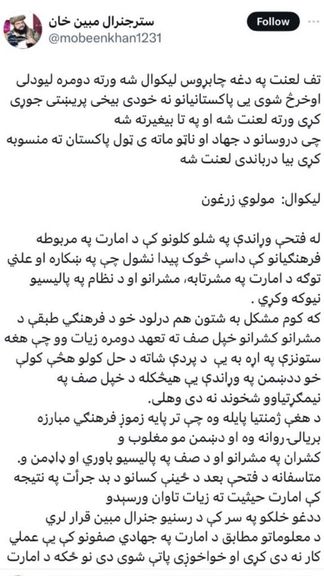 د طالبانو رسنیز فعال 'جنرال مبین' د پاکستان او طالبانو تر منځ په یوې جنجالي موضوع بدل شوی