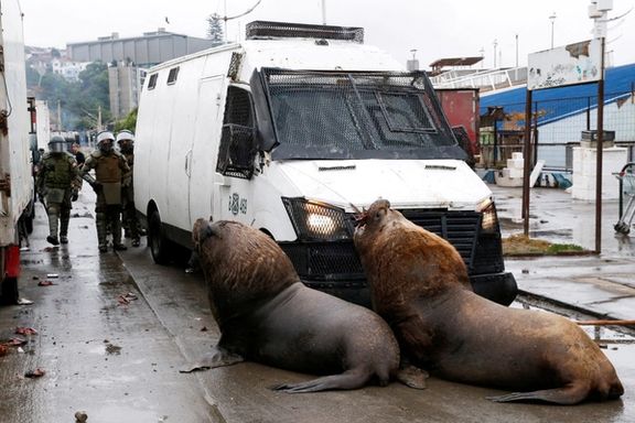 د چیلي هېواد په والپاریسو کې د پنجشنبې په ورځ (د ډسمبر په ۲۸مه) سمندري زمریانو د پولیسو د موټر مخې ته هغه مهال خڼډ شول چې پولیس له کب نیونکو سره په نښته کې و.