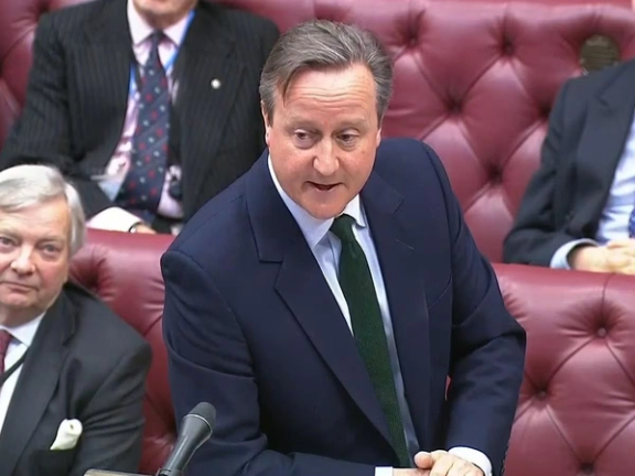 کامرون زیاته کړه، چې برېټانیا د فلسطین او اسراییل د شخړې د حل لپاره د "دوو دولتونو، دوو ملتونو" د پلان ملاتړ کوي.