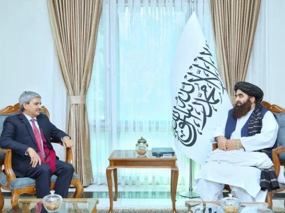 د طالبانو د بهرنیو چارو وزیر امیر خان متقي په کابل کې د هند د بهرنیو چارو د وزارت د افغانستان او پاکستان د څانګې له مشر جې پي سېنګ سره وکتل.