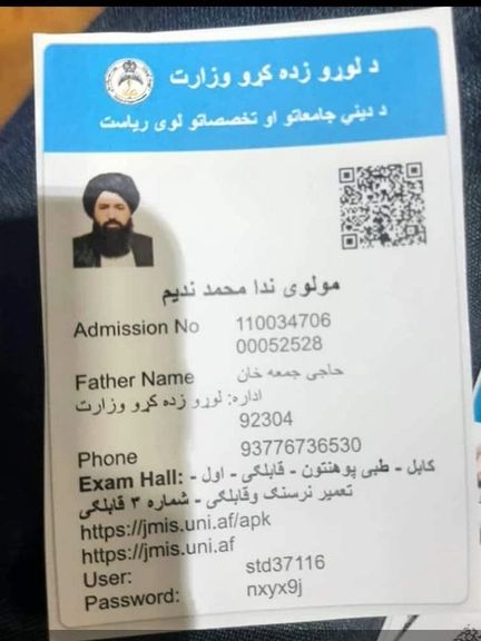 د طالبانو د لوړو زدکړو وزیر او د دې ډلې یو مخکښ غړی انس حقاني هم په دغه ازموینه کې د کډون په موخه کارتونه ترلاسه کړي وو.