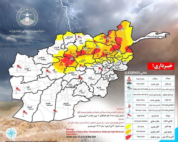 د طالبانو تر کنټرول لاندې د هواپوهنې اداره وایي، چې نن او سبا (د غبرګولي په ۳مه او ۴مه نېټه) په ۲۱ ولایتونو کې د شړکنده باران، تالندې، تېزو سېلیو او سېلابونو د راوتو اټکل شوی دی.