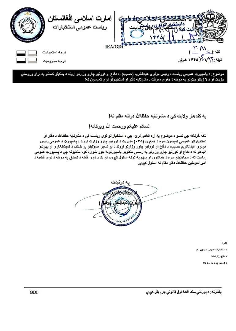 سرچینو د طالبانو او پاکستانی پلاوي د هوکړو سند له افغانستان انټرنشنل سره شریک کړی، چې په کندهار کې د ملا هبت الله دفتر ته هم لېږل شوی دی.