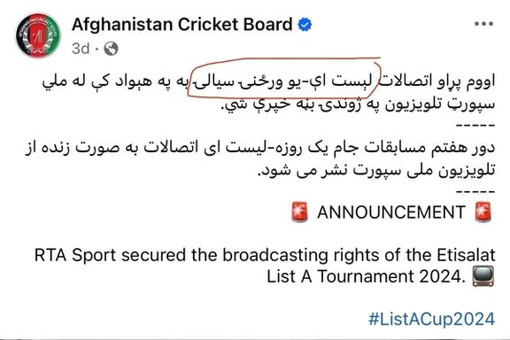 د افغانستان کرېکټ بورډ د "لېست اې" سیالیو له خبرپاڼو څخه د غازي امان الله خان نوم لېرې کړی دی. د لېست اې سیالیو ټورنمنټ چې د چهارشنبې په ورځ په کندز کې پیلیږي، رسمي نوم یې غازي امان الله خان جام لېست اې سیالۍ دي، خو کرېکټ بورډ ددې سیالیو رسمي نوم بدل کړی دی.