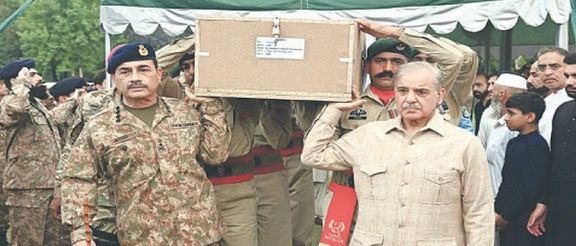 د پاکستان پوځ وايي، د سې شنبې په ورځ د پښتونخوا، شمالي او جنوبي وزیرستان په بېلابېلو پېښو کې پنځه امنیتي چارواکي او درې ماشومان وژل شوي دي. د رسنیو له لوري په خپرو شویو انځورونو کې لیدل کېږي، چې شهباز شریف او عاصم منیر د یوه امنیتي چارواکي تابوت پر خپلو اوږو پورته کړی.