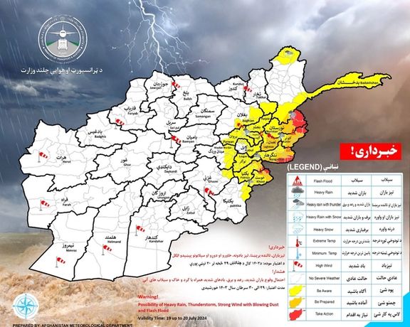 د طالبانو تر کنټرول لاندې د هواپوهنې اداره (د چنګاښ په ۲۹مه او ۳۰مه نېټه) په ۱۷ ولایتونو کې د شړکنده باران، تالندې برېښنا، تېزو سېلیو، خاورو دوړو او سېلابونو راوتو اټکل کړی دی.