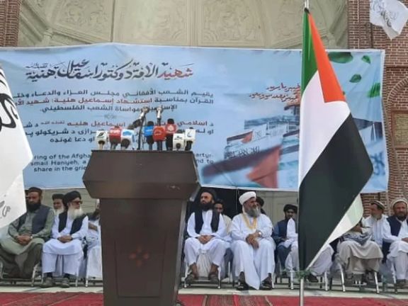 طالبانو د یکشنبې په ورځ (د زمري ۱۴مه) د کابل په عیدګاه جومات کې د حماس د سیاسي دفتر د مشر د فاتحې مراسم ترسره کړل. په هغو ویډیوګانو کې چې په ټولنیزو رسنیو کې خپاره شوي لیدل کیږي، چې د دې مراسمو ګډون کوونکو د طالبانو او فلسطین بیرغونه پورته کړي دي.