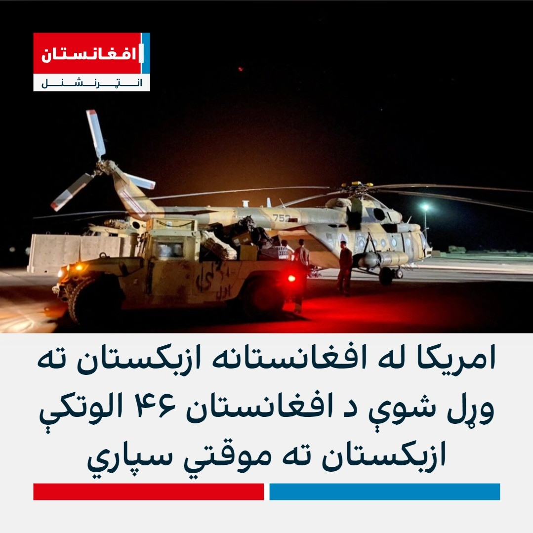امریکا او ازبکستان موافقه کړې، چې د افغان پېلوټانو له خوا ازبکستان ته وړل شوې پوځي ۴۶چورلکې او الوتکې په موقتي توګه ازبکستان ته وسپاري.