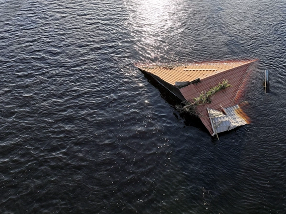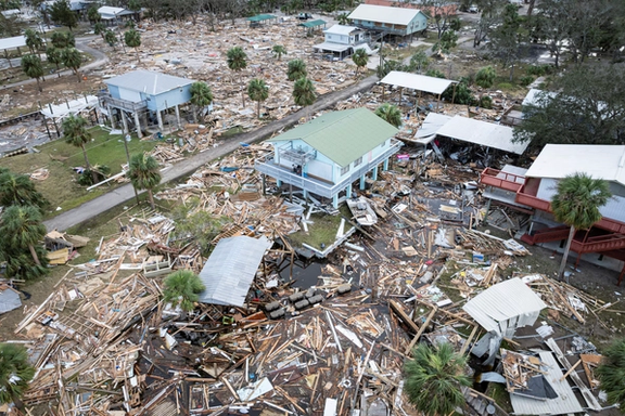 په دغه انځوریز راپور کې په توپان ځپلو سیمې کې پراخ ویجاړی لیدل کیږي.