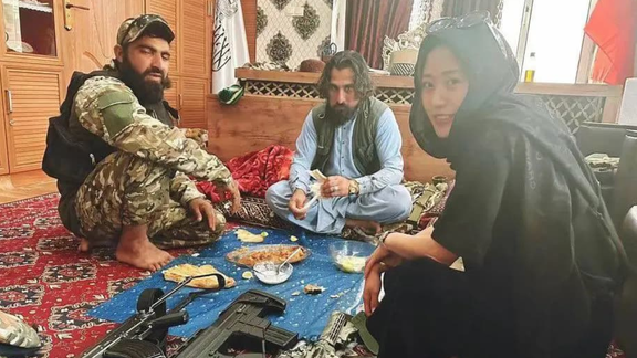 په بل انځور کې یوه چینايي ښځه لیدل کیږي چې په یو رسټورانټ کې له دوو طالب سرتیرو سره ډوډۍ خوري. دا څرګنده نه ده چې رسټورانټ په کوم ولایت کې موقعیت لري.