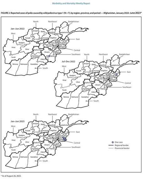 د ډبلیو ایچ او سازمان په راپور کې راغلي، چې د افغانستان په بېلابېلو ولایتونو کې په ۲۰۱۸ کې ۲۱ پېښې، په ۲۰۱۹ کې ۲۹ پېښې، په ۲۰۲۰ کې ۵۶ پېښې، ۲۰۲۱ کې څلور پېښې، په ۲۰۲۲ کې دوه پېښې، ۲۰۲۳ کې شپږ پېښې او ۲۰۲۴ کې تر اوسه پورې ۲۲ مثبتې پېښې ثبتې شوې دي.